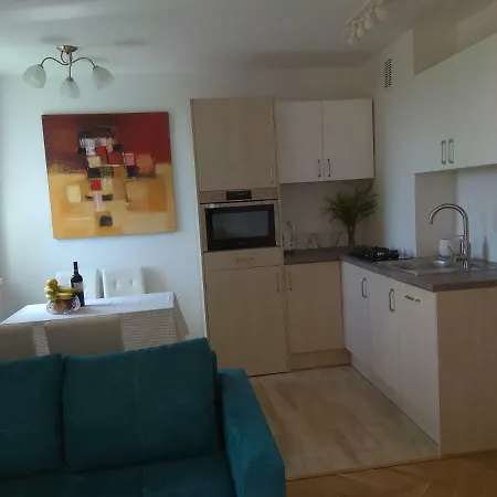 Het appartement is in de nabijheid van het Archeologisch Openluchtmuseum van Grodzisko gelegen. Het Oliwapark ligt op circa 10 minuten met de auto van het 1-slaapkamer appartement.